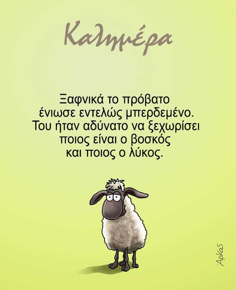 Στο σημερινό σκίτσο του Αρκά βλέπουμε ένα πρόβατο, με τη λεζάντα να γράφει: «Ξαφνικά το πρόβατο ένιωσε εντελώς μπερδεμένο. Του ήταν αδύνατο να ξεχωρίσει ποιος είναι ο βοσκός και ποιος ο λύκος».