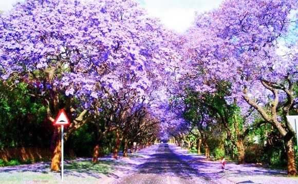 Πάνω από 10 εκατομμύρια δέντρα συνθέτουν την πιο πράσινη πόλη της Νότιας Αφρικής, μεταξύ των οποίων και 49 διαφορετικά είδη γιακαράντας, ιθαγενές δέντρο της Νότιας Αμερικής. Στο Γιοχάνεσμπουργκ, γνωστό και ως η «πόλη της γιακαράντας», έχουν φυτευτεί πάνω από 70.000 δέντρα τα οποία δημιουργούν φυσικά τούνελ στους δρόμους αλλά και εντυπωσιακά τοπία ειδικά όταν βρίσκονται στην κορύφωση της άνθισης. Ένα απίθανο σκηνικό κάνει την εμφάνισή του στο κέντρο της πόλης, σε έναν από τους πλέον πολυσύχναστους δρόμους, το οποίο προσθέτει μοβ-μπλε πινελιές στο μουντό αστικό τοπίο.