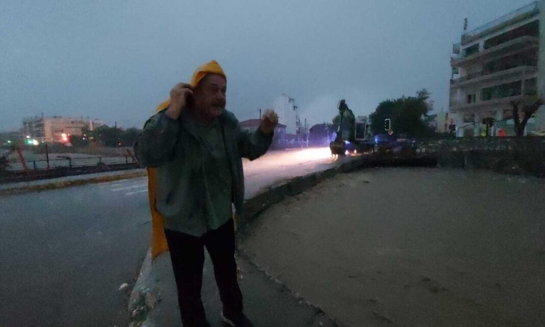 Ο δήμαρχος Βόλου βγήκε με πολλή βροχή στους κεντρικούς δρόμους και έκανε έκκληση στους πολίτες να μην βγαίνουν στους δρόμους γιατί έρχεται δύσκολη νύχτα