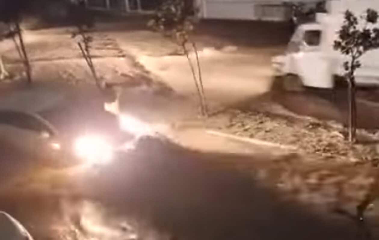 Στο βίντεο σοκ που ανάρτησε πολίτης φαίνεται ο χείμαρρος να παρασύρει αυτοκίνητα