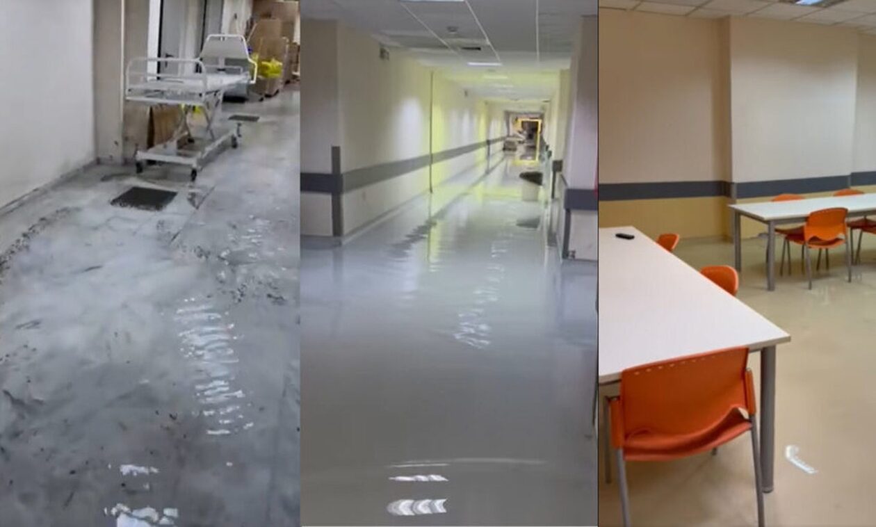 Κακοκαιρία Elias: Πλημμύρισαν τα υπόγεια και η τραπεζαρία του Νοσοκομείου Βόλου