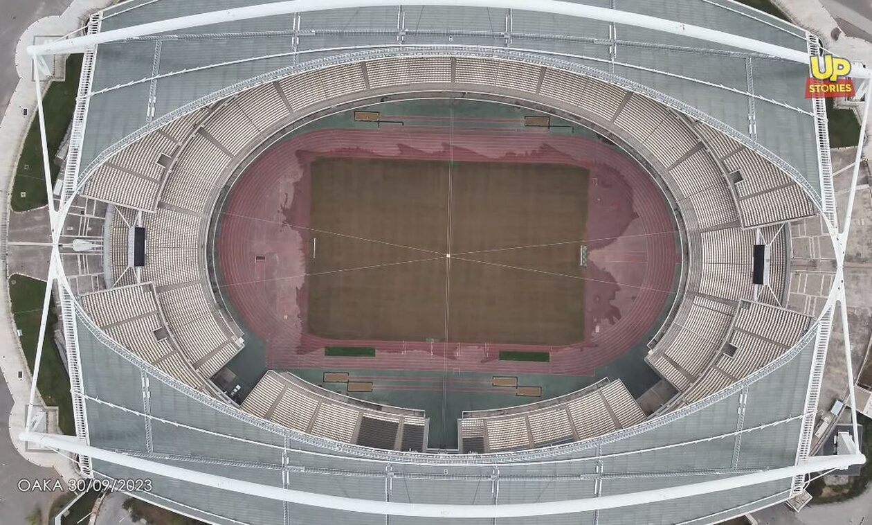 Μια σύντομη και πρόχειρη αυτοψία στο χώρο του ΟΑΚΑ και πάνω από το στέγαστρο Καλατράβα πραγματοποίησε το κανάλι του YouTube Up Stories, με χρήση ειδικού drone με ισχυρό τηλεφακό (zoom).
