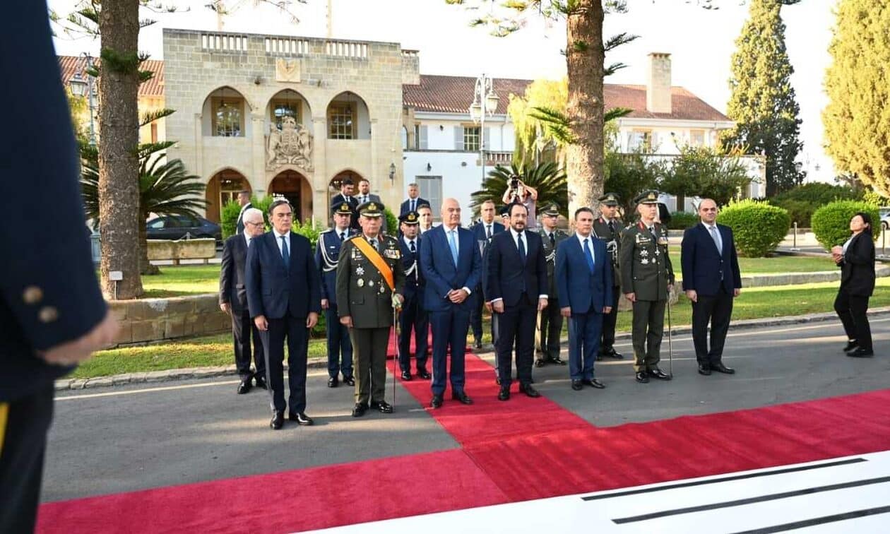 Με τον Πρόεδρο της Κύπρου Νίκο Χριστοδουλίδη συναντάται ο υπουργός Εθνικής Άμυνας Νίκος Δένδιας, συνοδευόμενος από τον Αρχηγό ΓΕΕΘΑ Κωνσταντίνο Φλώρο.