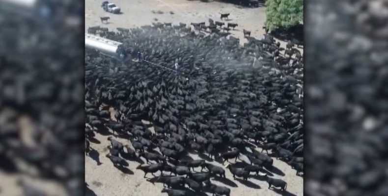 Το βίντεο, από drone, ανάρτησε στο διαδίκτυο η Άμπερ Λέα, μια αγρότισσα που χρειάστηκε να οδηγήσει για πάνω από μία ώρα ώστε να φέρει νερό στις περίπου 1.000 αγελάδες που εκτρέφει. Αν δεν μετέφερε η ίδια νερό, τα ζώα της δε θα είχαν τη δυνατότητα να ξεδιψάσουν, οπότε η επιβίωσή τους θα ήταν αβέβαιη σε ένα περιβάλλον που πλήττεται από εκτεταμένη λειψυδρία. «Το νερό στο βυτίο ήταν η μόνη πηγή νερού για τα βοοειδή. Οδηγούμε πάνω από 50 – 70 χιλιόμετρα και μεταφέρουμε πάνω από 100.000 λίτρα ημερησίως, ώστε να μπορέσουμε να διασφαλίσουμε την επιβίωσή τους», λέει η ίδια.