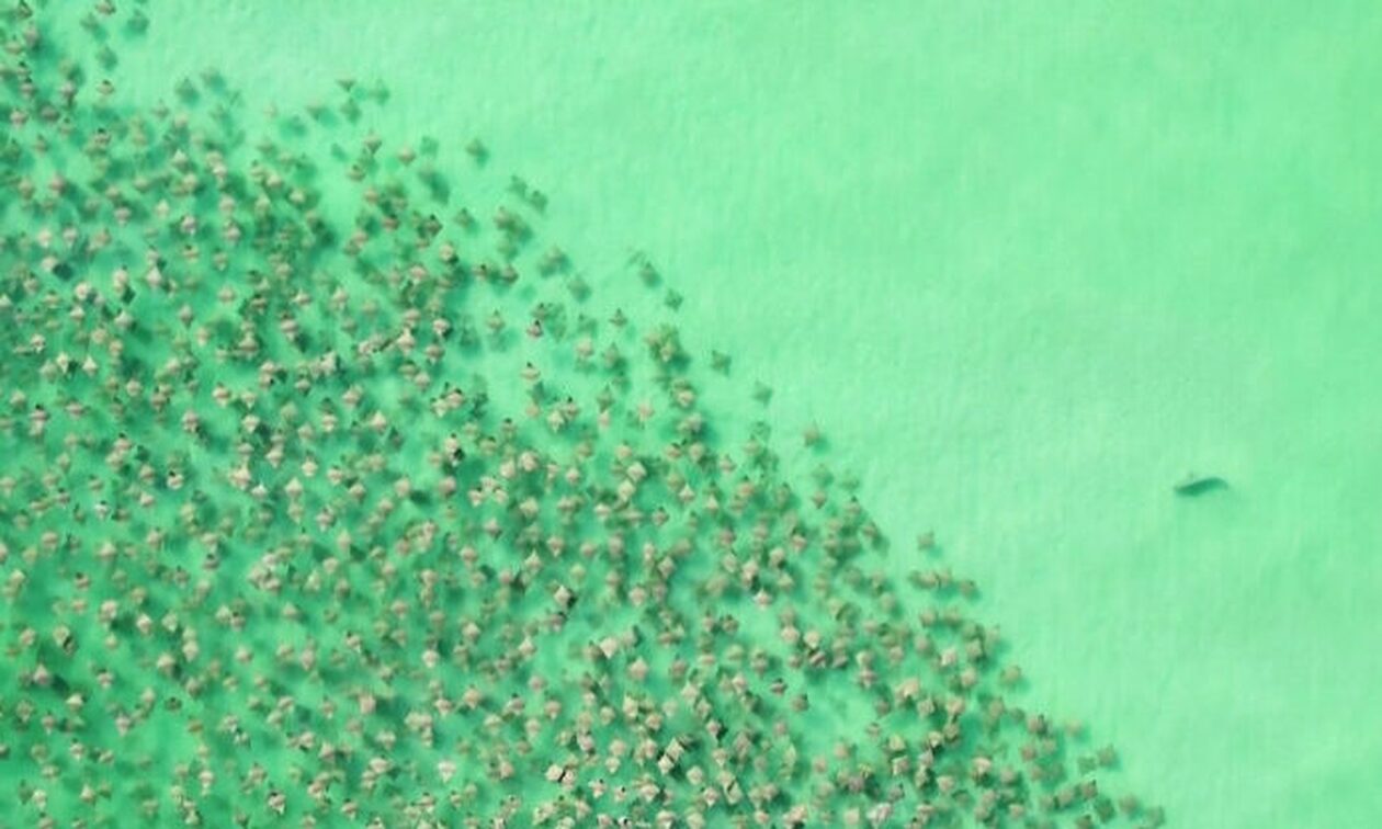 Πλάνα από drone που τραβήχτηκαν τον Σεπτέμβριο από αυτόπτη μάρτυρα έδειξαν έναν μοναχικό καρχαρία να κυνηγά εκατοντάδες σαλάχια στα ανοικτά των ακτών του νησιού Άννα Μαρία, στη Φλόριντα των Ηνωμένων Πολιτειών.