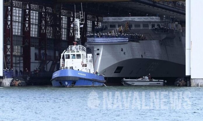 Λίγες ημέρες πριν από την επίσημη τελετή, η πρώτη από τις τρεις φρεγάτες Belharra που θα παραλάβει το ελληνικό Πολεμικό Ναυτικό, έπεσε στο νερό, στα ναυπηγεία της Naval Group στη Γαλλία.