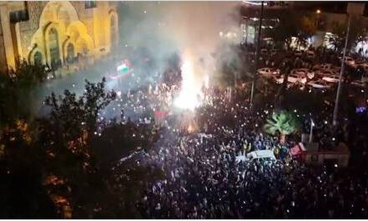 Πλήθος κόσμου έχει συγκεντρωθεί στην πλατεία Παλεστίνης στην Τεχεράνη ενώ βίντεο δείχνουν τους ξέφρενους πανηγυρισμούς και τα πυροτεχνήματα που κάνουν τη νύχτα μέρα στην ιρανική πρωτεύουσα.