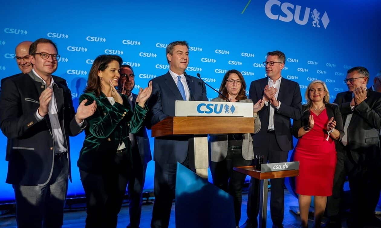 Σύμφωνα με το exit poll του πρώτου καναλιού της γερμανικής δημόσιας τηλεόρασης ARD, στην Βαυαρία η Χριστιανοκοινωνική Ένωση (CSU) του πρωθυπουργού Μάρκους Ζέντερ κερδίζει τις εκλογές, καταγράφοντας ωστόσο το ιστορικά χαμηλότερο ποσοστό της, 37% (-0,2 από τις προηγούμενες εκλογές).
