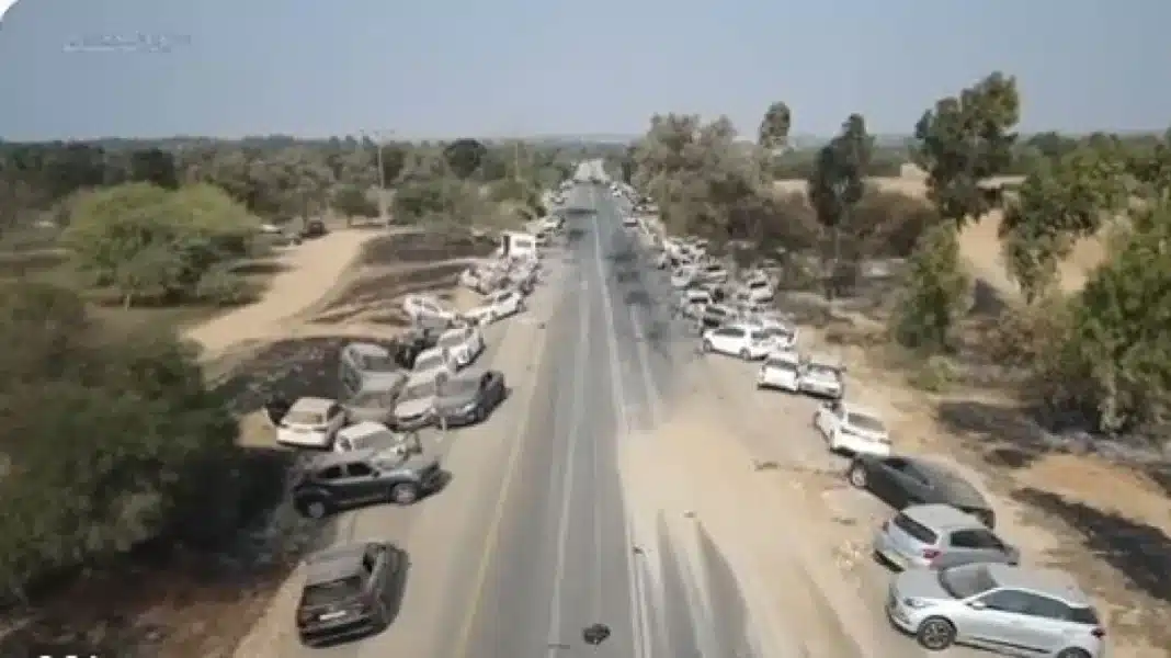 Ένα βίντεο έδειξε τουλάχιστον έξι μοτοσικλέτες με μαχητές να διασχίζουν μια τρύπα σε ένα μεταλλικό φράγμα. Μια φωτογραφία που κυκλοφόρησε από τη Χαμάς δείχνει μια μπουλντόζα να κατεδαφίζει ένα τμήμα του φράχτη.