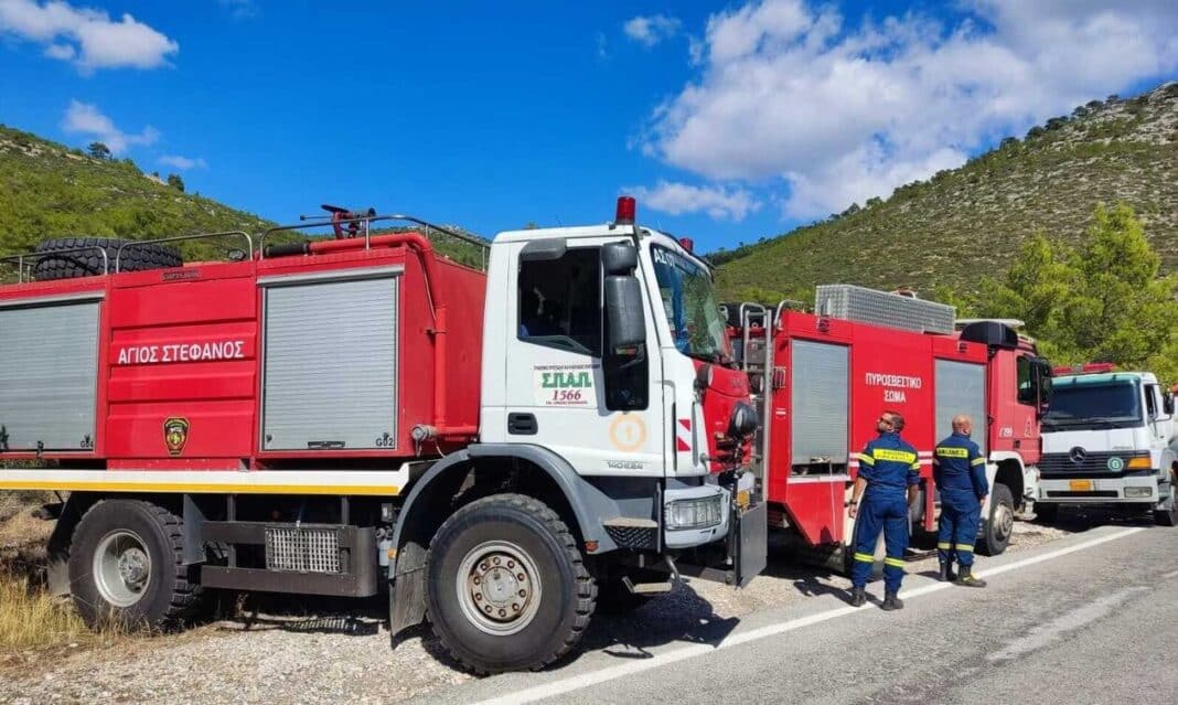 Στο σημείο επιχειρούν 52 πυροσβέστες με 14 οχήματα και τρεις ομάδες πεζοπόρων τμημάτων, ενώ από αέρος συνέδραμαν 2 αεροσκάφη και ένα ελικόπτερο.