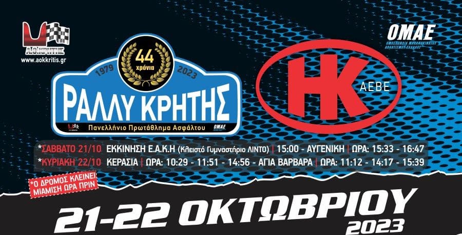 Το προσεχές Σαββατοκύριακο η Κρήτη θα φιλοξενήσει τον τελευταίο αγώνα του Πανελληνίου Πρωταθλήματος Ράλι Ασφάλτου. Το φετινό 44ο Η&Κ Ράλι Κρήτης θα κρίνει τους τίτλους τόσο στην γενική όσο και στην F2, γι’ αυτό παρουσιάζει τεράστιο ενδιαφέρον. Δεν είναι τυχαίο, λοιπόν, ότι 32 πληρώματα απ’ όλη τη χώρα θα ταξιδέψουν στην Κρήτη. Φυσικά το μεγάλο …
