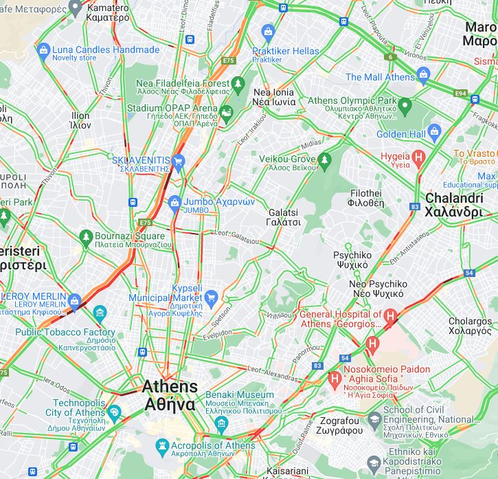 Ειδικότερα, μεγάλες καθυστερήσεις υπάρχουν στην Εθνική Οδό Αθηνών-Λαμίας και στα δυο ρεύματα. Σε εκείνο της ανόδου ξεκινάει από το ύψος του Περιστερίου και τελειώνει στον Κόμβο Καλυφτάκη ενώ από το ρεύμα καθόδου ξεκινά από το ύψος των Αχαρνών και φτάνει έως και το Αιγάλεω.
