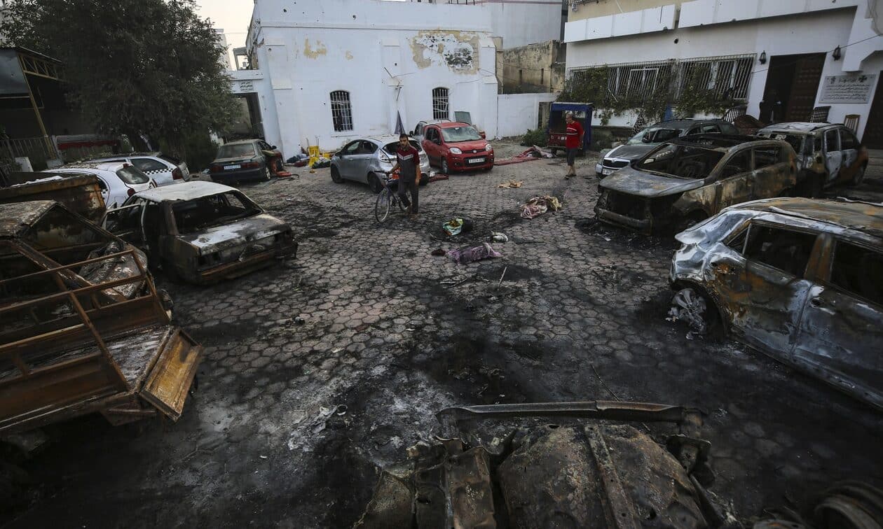 Πόλεμος στο Ισραήλ: Στο νοσοκομείο αυτό νοσηλεύονται αυτή τη στιγμή 400 ασθενείς και φιλοξενούνται 12.000 εκτοπισμένοι άμαχοι, υποστηρίζει η παλαιστινιακή οργάνωση αρωγής και περίθαλψης.