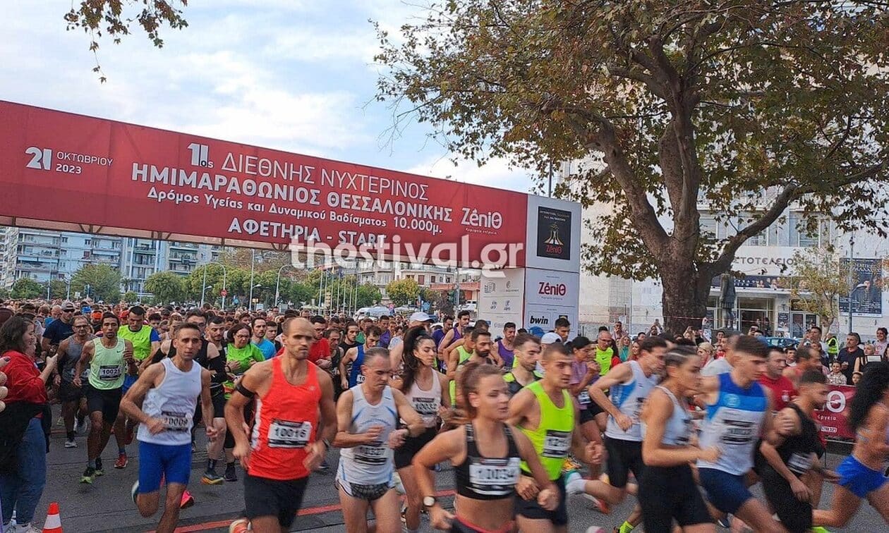 Η εκκίνηση δόθηκε και περίπου 3.000 δρομείς βάζουν τα δυνατά τους στον Δρόμο Υγείας και Δυναμικού Βαδίσματος 10χλμ, στο πλαίσιο του 11ου Διεθνή Νυχτερινού Ημιμαραθωνίου Θεσσαλονίκης.