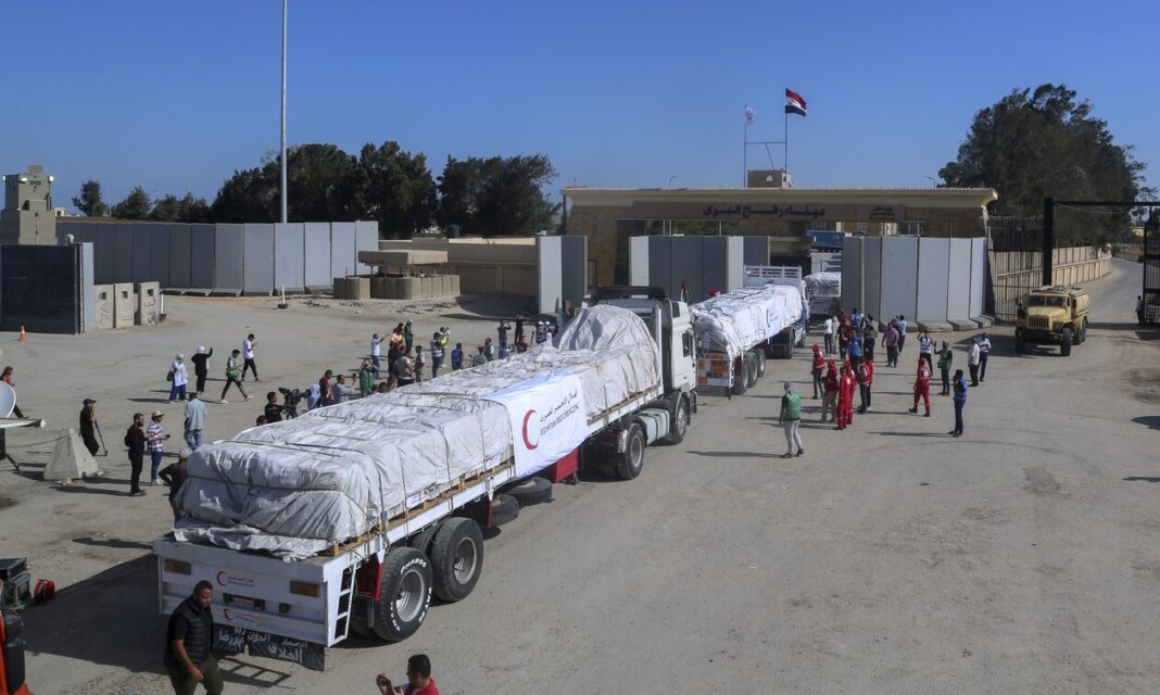 Σήμερα 17 φορτηγά με βοήθεια εισήλθαν στη Λωρίδα της Γάζας από την Αίγυπτο μέσω του τερματικού σταθμού της Ράφας, το μόνο σημείο διέλευσης προς τον παλαιστινιακό θύλακα που δεν ελέγχεται από το Ισραήλ.
