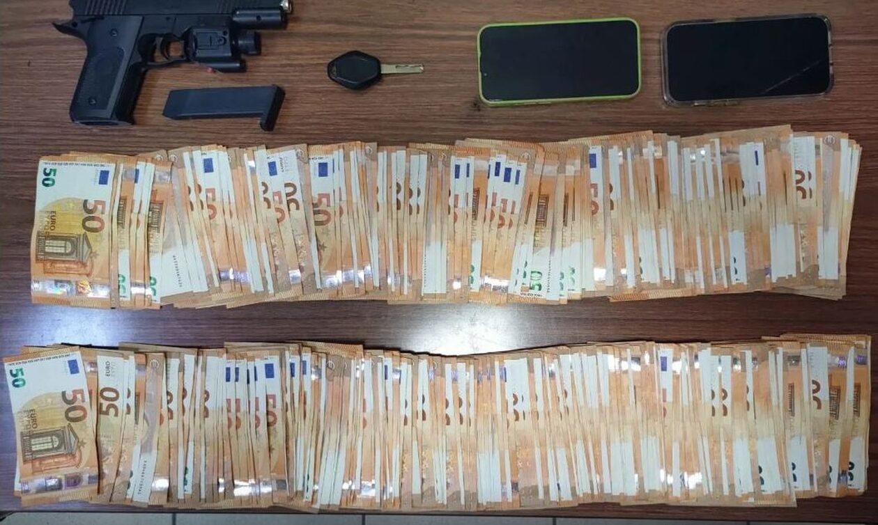 Σε έρευνα του οχήματος που επέβαιναν, εντοπίστηκε επιμελώς κρυμμένο το χρηματικό ποσό των 17.200 ευρώ, το οποίο αποδόθηκε στην παθούσα. Επίσης στο όχημά τους βρέθηκε και κατασχέθηκε μία απομίμηση πιστολιού (ρέπλικα).