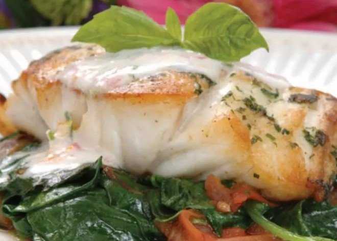 Καθαρίζουμε το ψάρι, το κόβουμε σε χοντρές φέτες και τις αλατοπιπερώνουμε.
