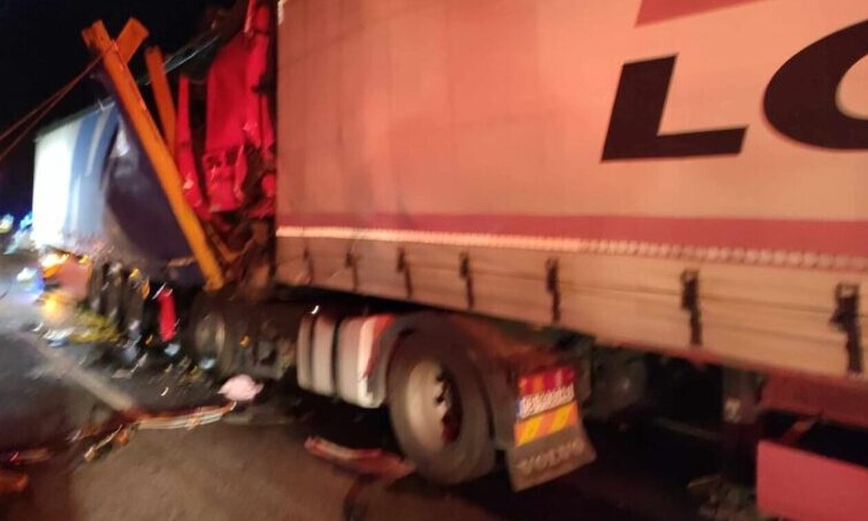 Σύμφωνα με πληροφορίες της ΕΡΤ Σερρών, μετά από μια δύσκολη επιχείρηση, απεγκλωβίστηκε ο οδηγός της νταλίκας, που -όπως φαίνεται στις εικόνες- το παρμπρίζ της μετατράπηκε σε άμορφη μάζα.