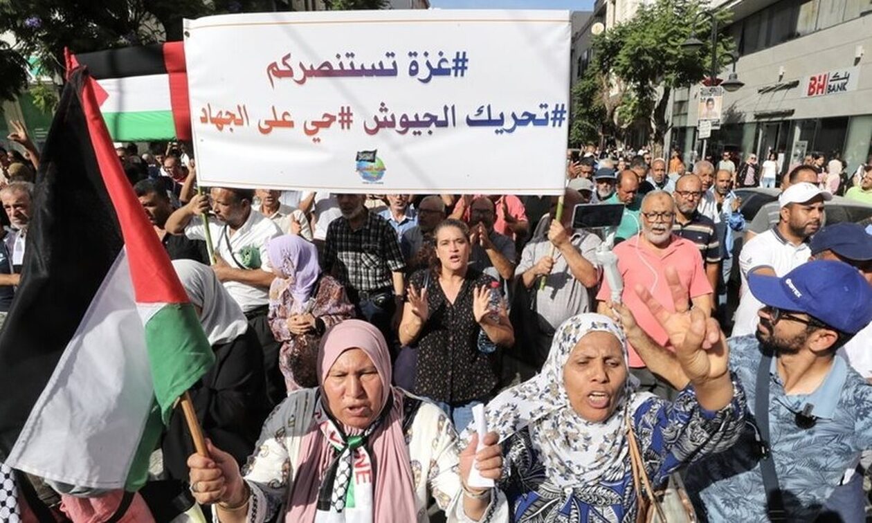 “Η αντίσταση είναι ο δρόμος για την απελευθέρωση”, ήταν ένα άλλο, ενώ πολλοί ήταν οι διαδηλωτές που κρατούσαν παλαιστινιακές και ιορδανικές σημαίες.