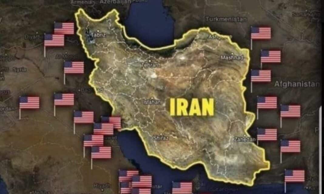 Στην ανάρτησή του επισυνάπτει χάρτη που δείχνει πως το Ιράν ειναι περικυκλωμένο με αμερικανικές βάσεις και με την αναφορά ότι «το Ιράν θέλει πόλεμο, δείτε πόσο κοντά έχουν βάλει τη χώρα τους στις βάσεις μας»