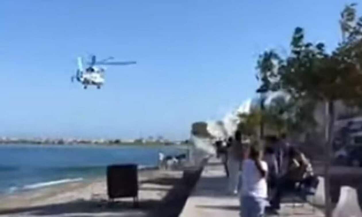 Πλαταμώνας: Το ελικόπτερο «σάρωσε» ομπρέλες και καθίσματα μπροστά από κατάστημα υγειονομικού ενδιαφέροντος.
