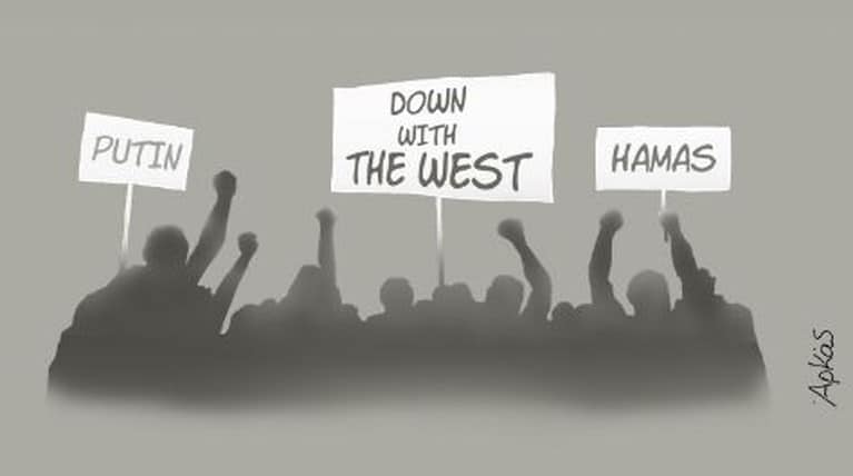 Με ένα σκληρό σκίτσο, εν μέσω του αιματοκυλίσματος στη Γάζα, μας λέει σήμερα μια «καλημέρα» γροθιά στο στομάχι ο Αρκάς.