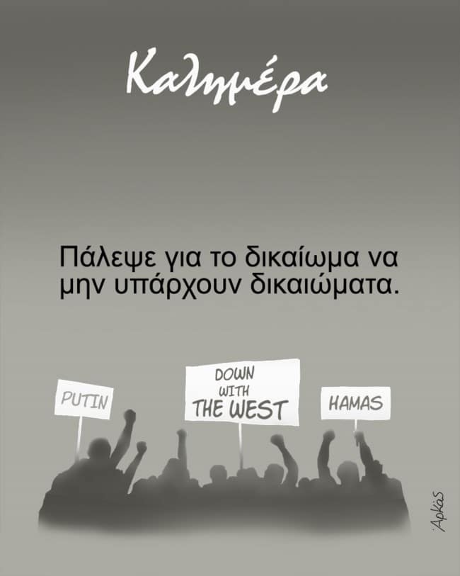 Η λεζάντα του σκίτσου γράφει: «Πάλεψε για το δικαίωμα να μην υπάρχουν δικαιώματα».
