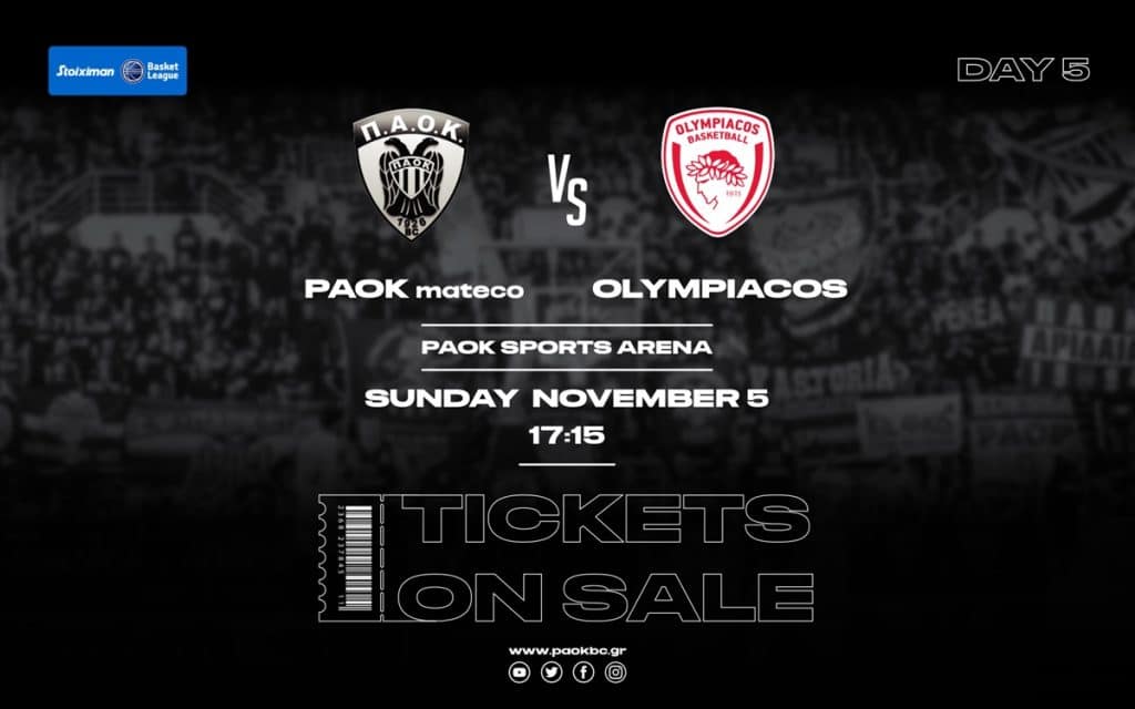 Ξεκίνησε η διάθεση των εισιτηρίων για το παιχνίδι του ΠΑΟΚ με τον Ολυμπιακό, για την 5η αγωνιστική της Basket League. Αναλυτικά η ανακοίνωση: «Η ΚΑΕ ΠΑΟΚ mateco ανακοινώνει ότι από σήμερα το μεσημέρι ξεκίνησε η διάθεση των εισιτηρίων για τον αγώνα ΠΑΟΚ mateco – Ολυμπιακός, που θα διεξαχθεί στο PAOK Sports Arena, την Κυριακή 5 …