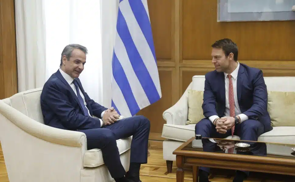 Στο γραφείο του πρωθυπουργού στη βουλή γίνεται αυτήν την ώρα η συνάντηση του Κυριάκου Μητσοτάκη με τον νέο πρόεδρο του ΣΥΡΙΖΑ ΠΣ Στέφανου Κασσελάκη.