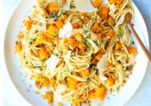 Πεντανόστιμα ζυμαρικά με τρυφερή κολοκύθα, τραγανά βότανα και γευστικό καμένο βούτυρο