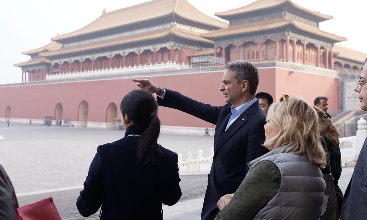 Ο πρωθυπουργός Κυριάκος Μητσοτάκης, που πραγματοποιεί επίσημη επίσκεψη στην Κίνα, στο πλαίσιο της οποίας θα έχει συναντήσεις με την κινεζική ηγεσία, επισκέφθηκε σημερα και ξεναγήθηκε στην Απαγορευμένη Πόλη στο Πεκίνο.