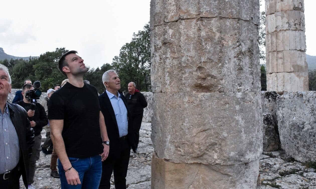 Ο Στέφανος Κασσελάκης, επέδειξε μεγάλο ενδιαφέρον για τον αρχαιολογικό χώρο και ενημερώθηκε εκτενώς για τις προκλήσεις που αντιμετωπίζει, με κυριότερη αυτή της αναστήλωσης των μνημείων