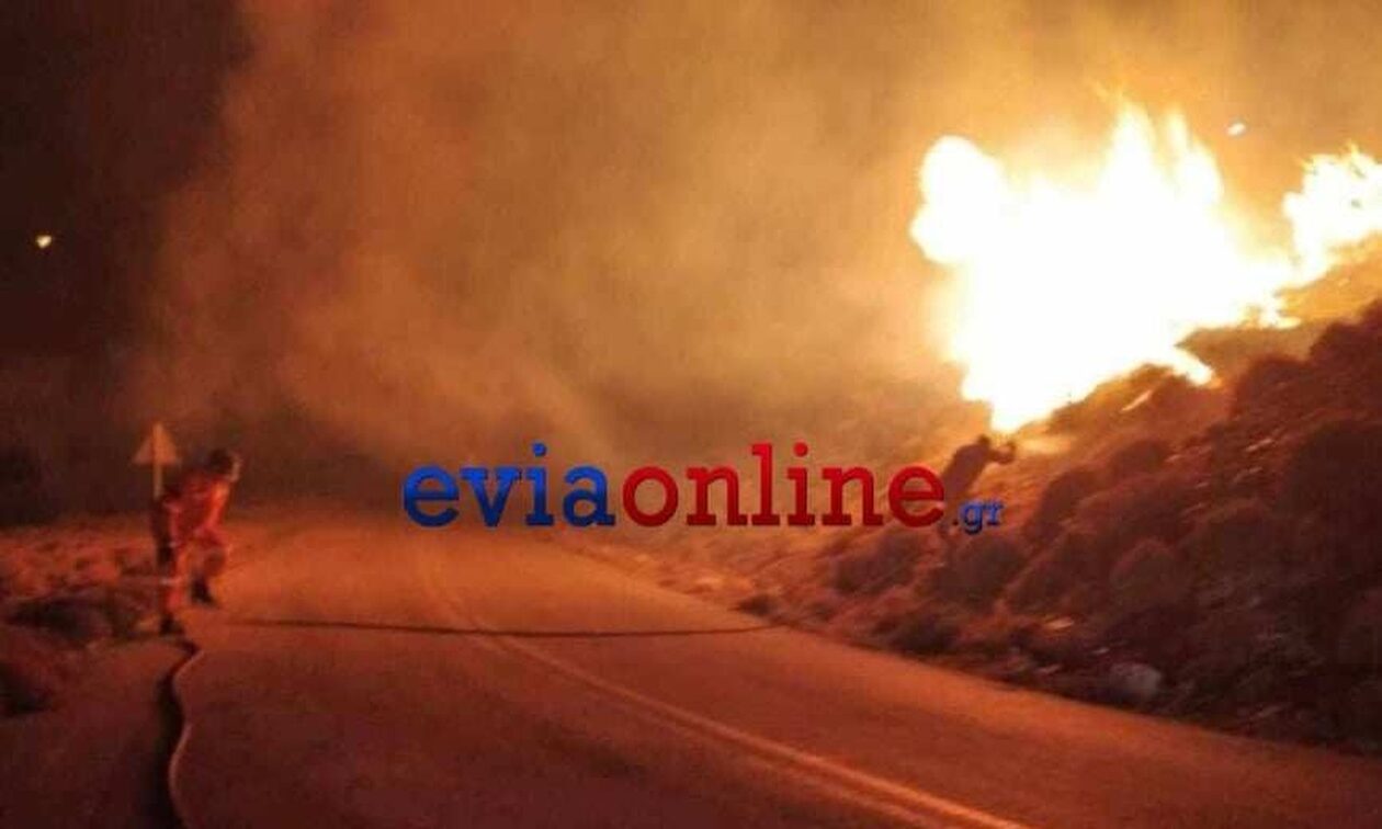 Ολονύχτια μάχη με τις φλόγες έδωσαν ισχυρές δυνάμεις της Πυροσβεστικής στη φωτιά που ξέσπασε χθες το μεσημέρι στην Κάρυστο