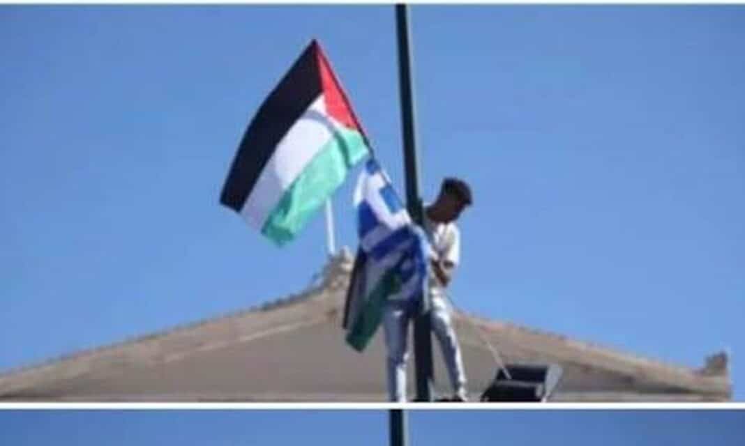 Ταυτοποιήθηκε ο 22χρονος Παλαιστίνιος, ο οποίος εμφανίζεται σε βίντεο να υψώνει τη σημαία της χώρας του κατά τη διάρκεια συγκέντρωσης στο Σύνταγμα, την Κυριακή 5 Νοεμβρίου 2023.