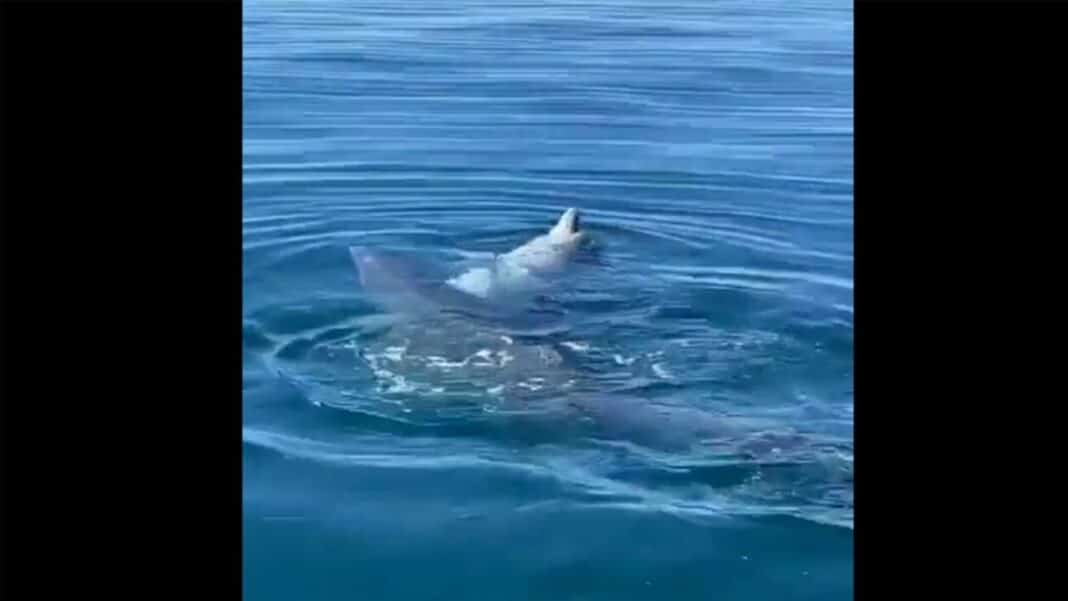 Όταν έφτασαν αρκετά κοντά διαπίστωσαν ότι το μικρό δελφινάκι είχε μπλεχτεί στα δίχτυα και η μητέρα του προσπαθούσε να σώσει το παγιδευμένο μωρό της σπρώχνοντας το στην επιφάνεια για να αναπνεύσει.