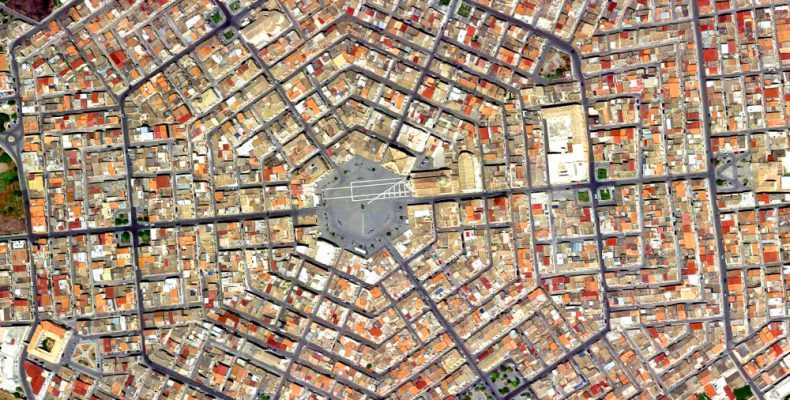 Το Grammichele που χτίστηκε από τον Carlo Maria Carafa Branciforte και σχεδιάστηκε από τον Michele da Ferla, ήταν η πρώτη πόλη στην Ευρώπη με εξαγωνικό σχεδιασμό, ο οποίος θα μπορούσε ενδεχομένως να επεκταθεί επ’ αόριστον. Χωρίζεται σε έξι τομείς με έξι δρόμους που συγκλίνουν προς την κεντρική πλατεία, σχηματίζοντας δηλαδή εξάγωνο.