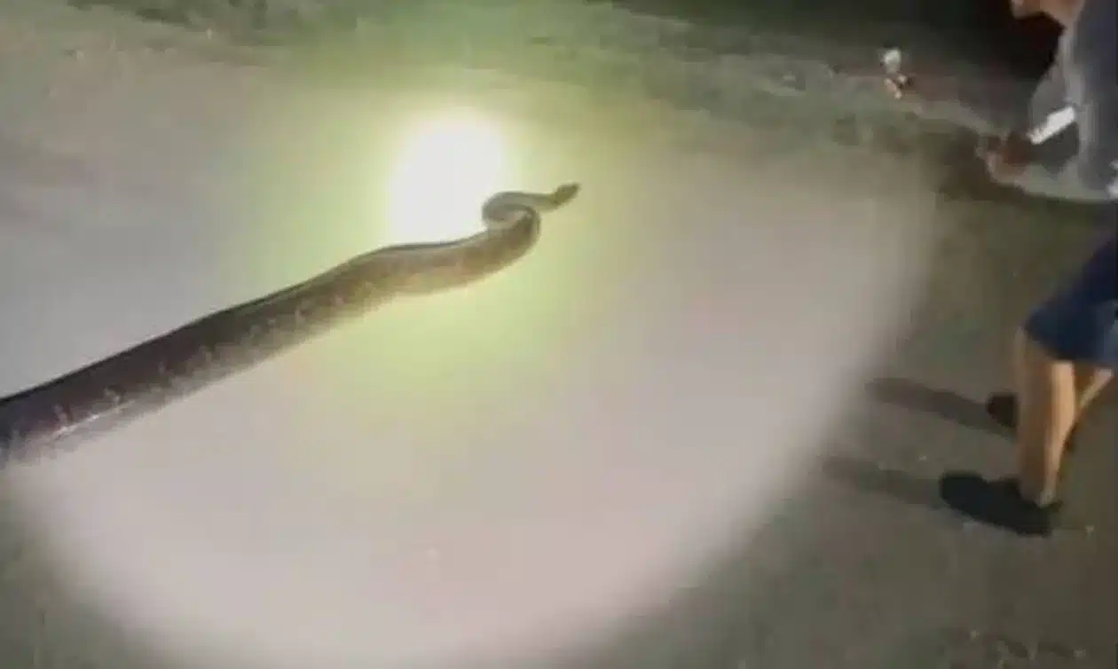 Σε ένα από τα βίντεο που δημοσιεύτηκε στο Instagram, το τεράστιο φίδι φαίνεται να διασχίζει έναν χωματόδρομο στο Εθνικό Πάρκο πριν εντοπιστεί από δύο άνδρες.