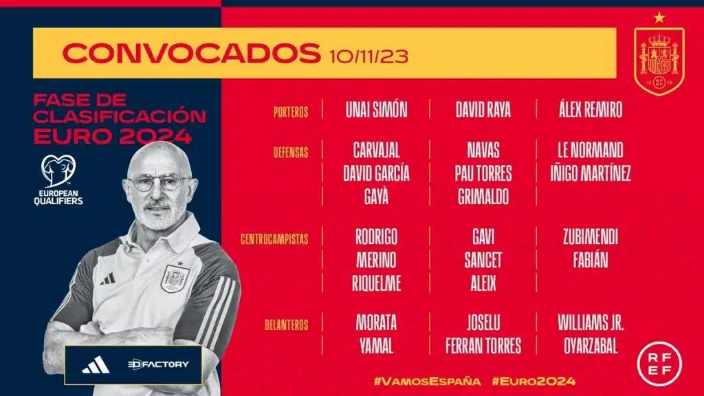 Ευκαιρίες σε ποδοσφαιριστές που δεν έχουν αγωνιστεί στο παρελθόν στην εθνική Ισπανίας δίνει ο Λουίς ντε λα Φουέντε, ενόψει των τελευταίων αγώνων για την προκριματική φάση του EURO. Με τη «ρόχα» να έχει ήδη εξασφαλίσει το εισιτήριο για τα τελικά της Γερμανίας, ο ομοσπονδιακός τεχνικός κάλεσε ενόψει των αναμετρήσεων με Κύπρο και Γεωργία τέσσερις νέους …