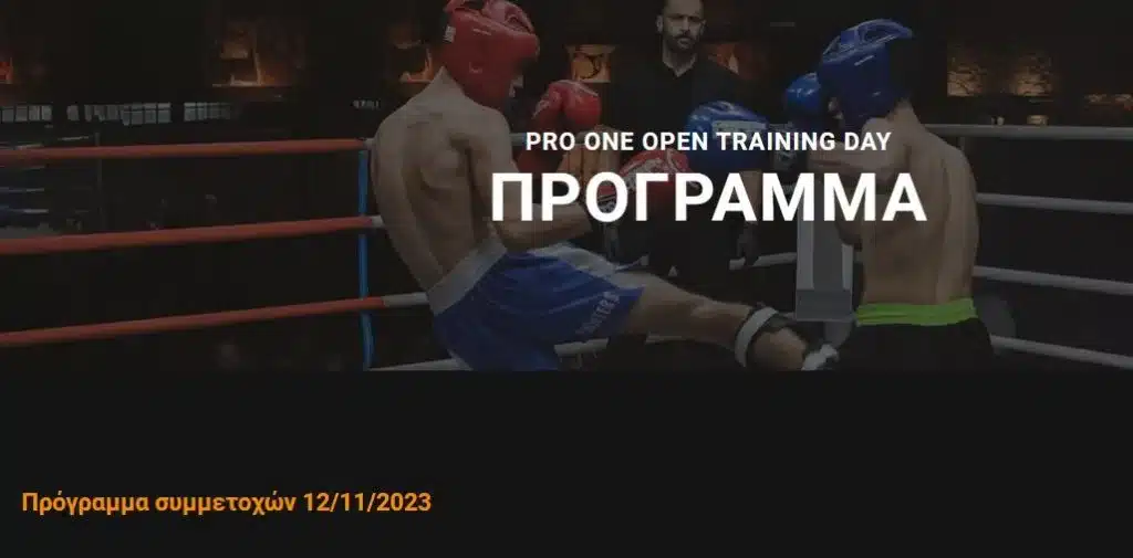 Aύριο Κυριακή 12 Νοεμβρίου το πρόγραμμα των PRO ONE Open Training Days περιλαμβάνει 170 αγώνες! Δείτε αναλυτικά το πρόγραμμα κάθε ενός από τα 4 ρινγκ με περίπου 40-45 αγώνες σε κάθε ένα.