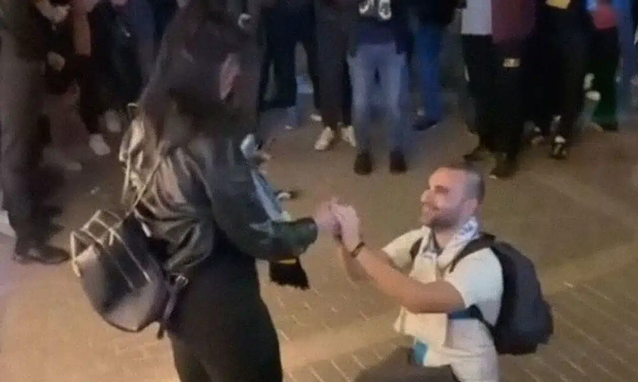 Έξω από το γήπεδο της ΑΕΚ στη Νέα Φιλαδέλφεια έλαβε χώρα μία πρόταση γάμου.