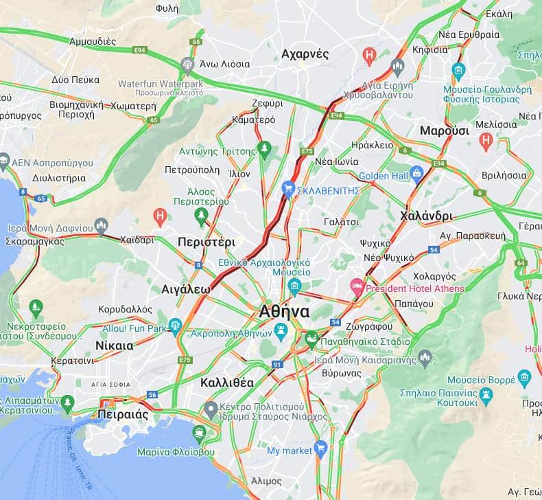 Μποτιλιάρισμα και στη Λεωφόρο Αθηνών από το Χαϊδάρι μέχρι τα Διυλιστήρια ενώ αυξημένη είναι η κίνηση στη Λεωφόρο Κηφισίας.