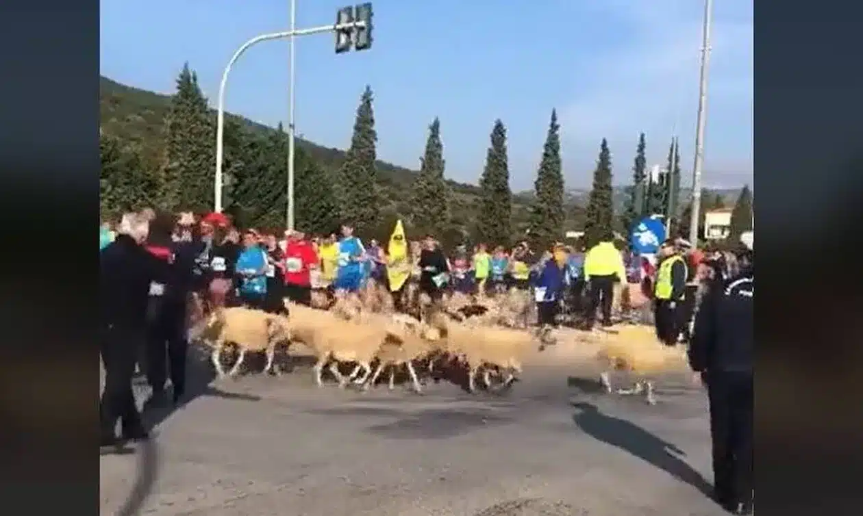 Κοπάδι με πρόβατα μπήκε στη διαδρομή των αθλητών του Μαραθωνίου, με τον βοσκό να τρέχει ακόμα πιο γρήγορα από τους δρομείς προκειμένου να τα απομακρύνει