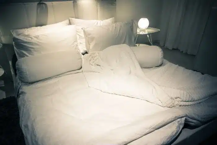 Aνεβαίνει αυτή και περιμένει. Πάει και αυτός γδύνεται και της λέει απο πάνω της.
