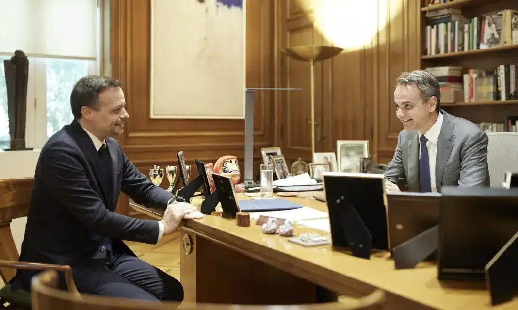 Σε θετικό κλίμα η συνάντηση του πρωθυπουργού Κυριάκου Μητσοτάκη με τον Δήμαρχο Αθηναίων, Χάρη Δούκα, στο Μέγαρο Μαξίμου.