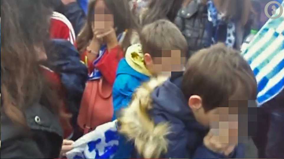 Τα παιδιά, που δεν είναι ηλικίας πάνω από δέκα ετών, φαίνονται πανικοβλημένα, να κλαίνει και να βήχουν από τα χημικά, ενώ δεν μπορούν να καταλάβουν τι είναι αυτό που τους συνέβη.