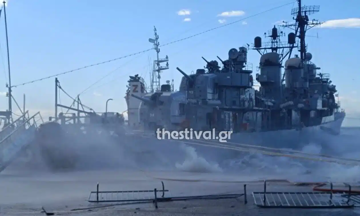 Το αντιτορπιλικό, βρίσκεται στο Μέγαρο Μουσικής Θεσσαλονίκης, και βίντεο του thestival.gr δείχνουν τα μανιασμένα κύματα να χτυπούν ανελέητα το καράβι, το οποίο λειτουργεί ως πλωτό μουσείο.