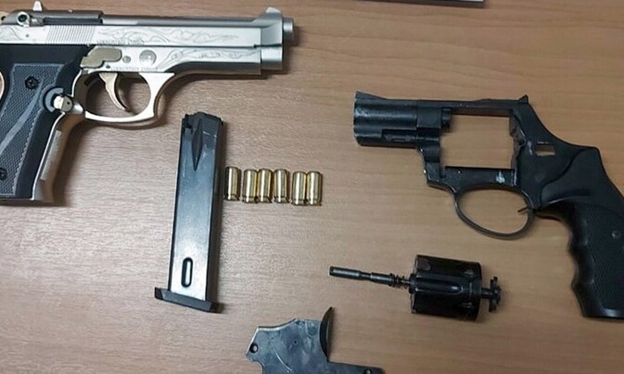 Εκεί βρέθηκαν στην κατοχή του και κατασχέθηκαν 2 όπλα κρότου (απομίμησης) πιστολιού και περιστρόφου αντίστοιχα καθώς και 6 φυσίγγια.