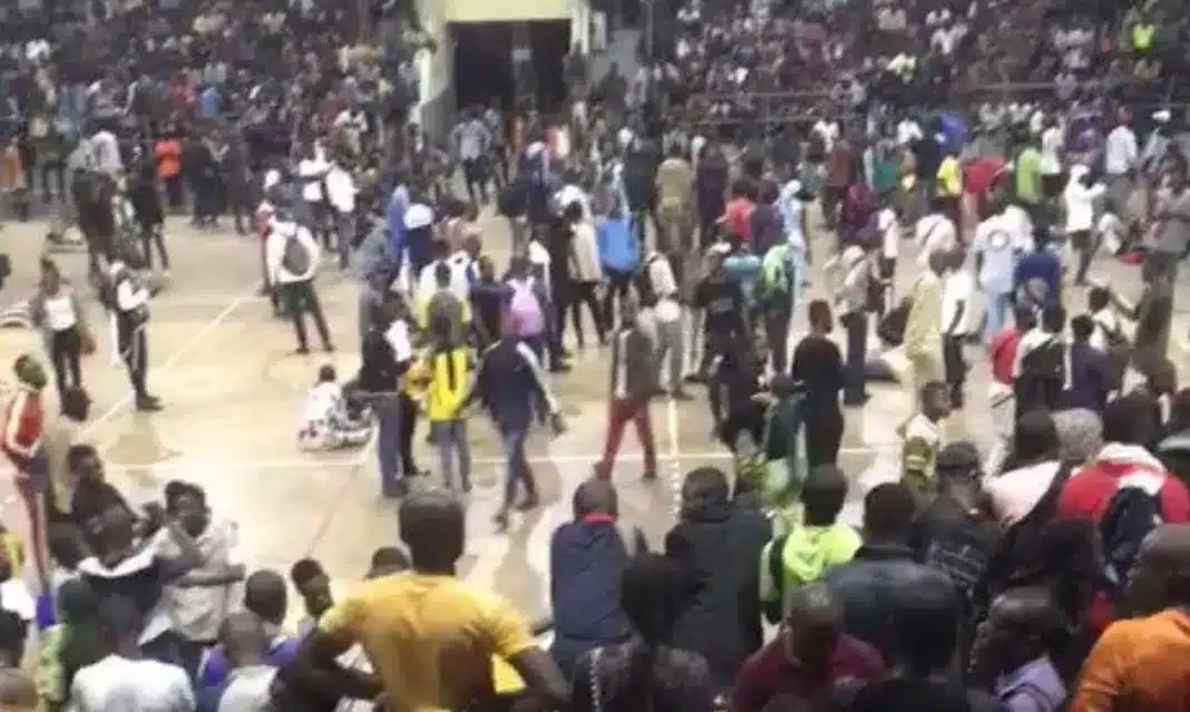 Αργά το βράδυ της Δευτέρας, οι υποψήφιοι άνοιξαν δια της βίας την πύλη του σταδίου, όπου θα γινόταν η διαδικασία της αξιολόγησης τους, στο κέντρο της Μπραζαβίλ. Πολλοί από αυτούς έπεσαν και ποδοπατήθηκαν από εκείνους που ακολουθούσαν.