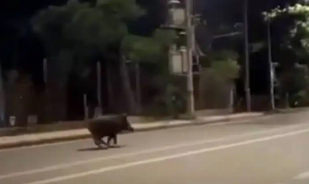 Βίντεο δείχνει ένα αγριόχοιρο να τρέχει στον αυτοκινητόδρομο του Πανοράματος, μόλις λίγα μέτρα από τον Περιφερειακό