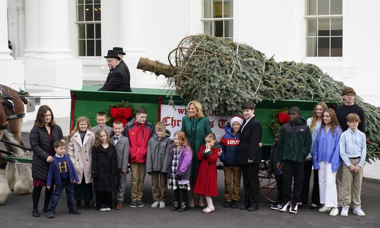 Τιμώντας την εορταστική παράδοση όπως κάθε χρόνο, η πρώτη κυρία των ΗΠΑ Τζιλ Μπάιντεν παρέλαβε το επίσημο χριστουγεννιάτικο δέντρο του Λευκού Οίκου για το 2023. Η 72χρονη κυρία Μπάιντεν, κάλεσε οικογένειες στρατιωτών να γιορτάσουν μαζί της, καθώς υποδέχθηκε τον κεντρικό διάκοσμο, μια μακροχρόνια παράδοση που εγκαινιάζει πολλές εβδομάδες εορτασμών στο Λευκό Οίκο.